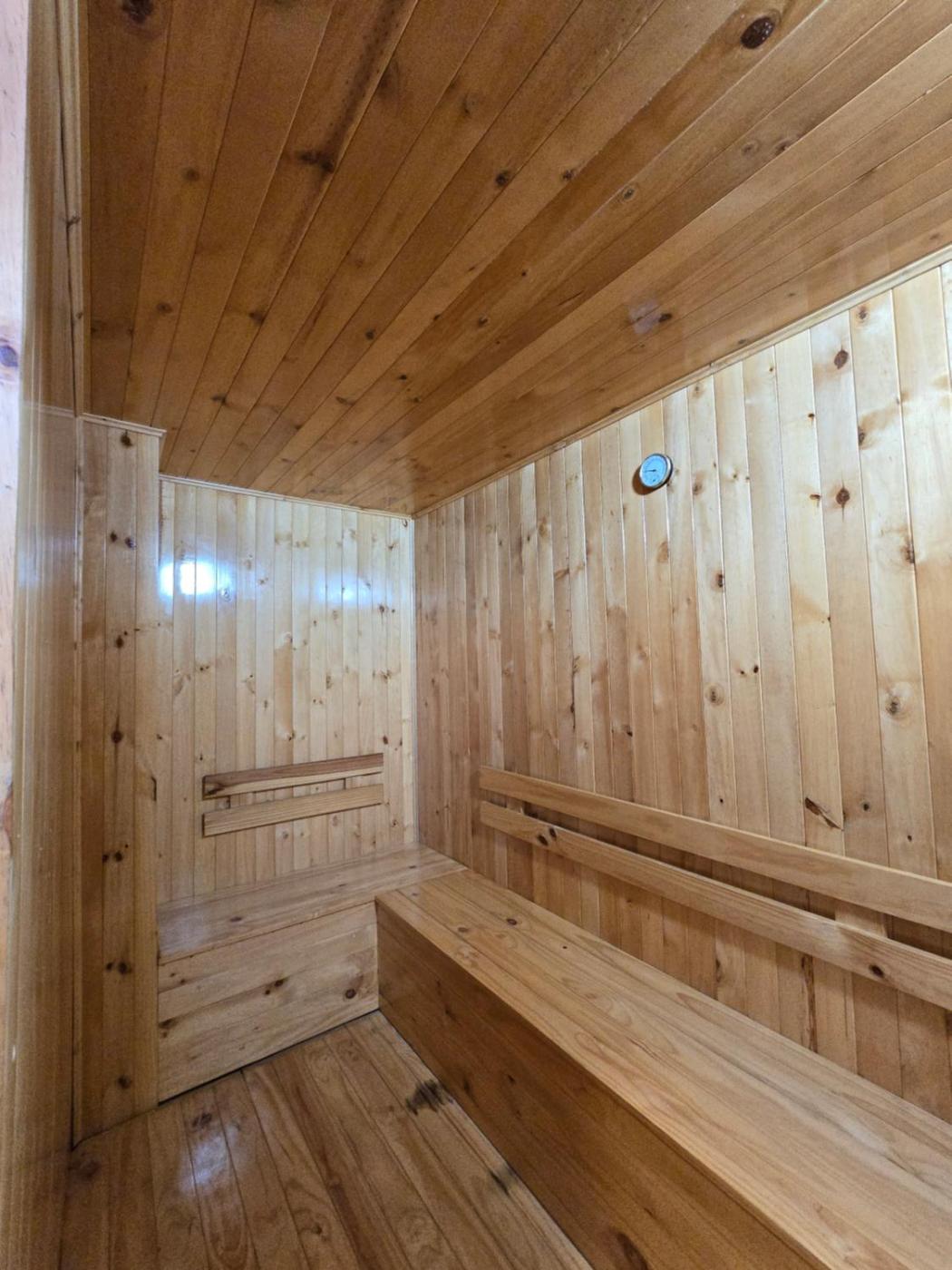 Three-Bedroom Apartment. This apartment boasts a hot tub and a sauna. The apartments kitchen is available for cooking and storing food. The spacious apartment offers air conditioning, a washing machine, a sofa as well as a terrace with garden views. The unit offers 3 beds.